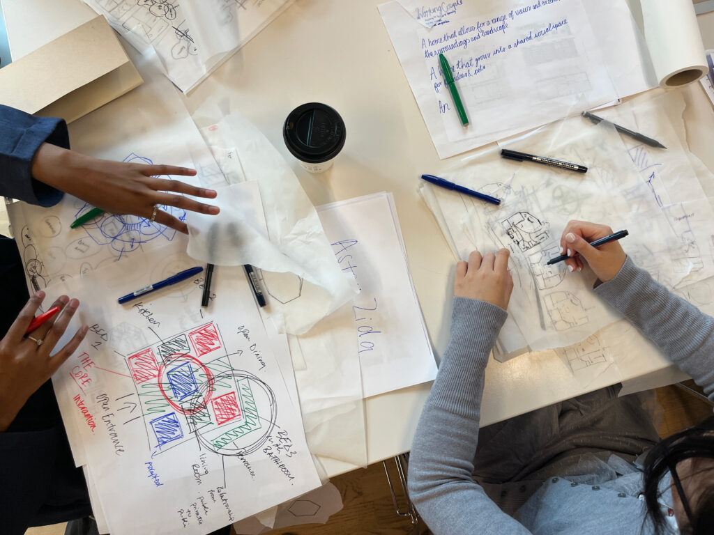 Working entirely by hand, either in pen and pencil, on trace and paper, students began by setting a series of intentions for their dwellings. Each scheme responded to the lived experience of future residents, resulting in a set of unique dwelling typologies rooted in everyday need.