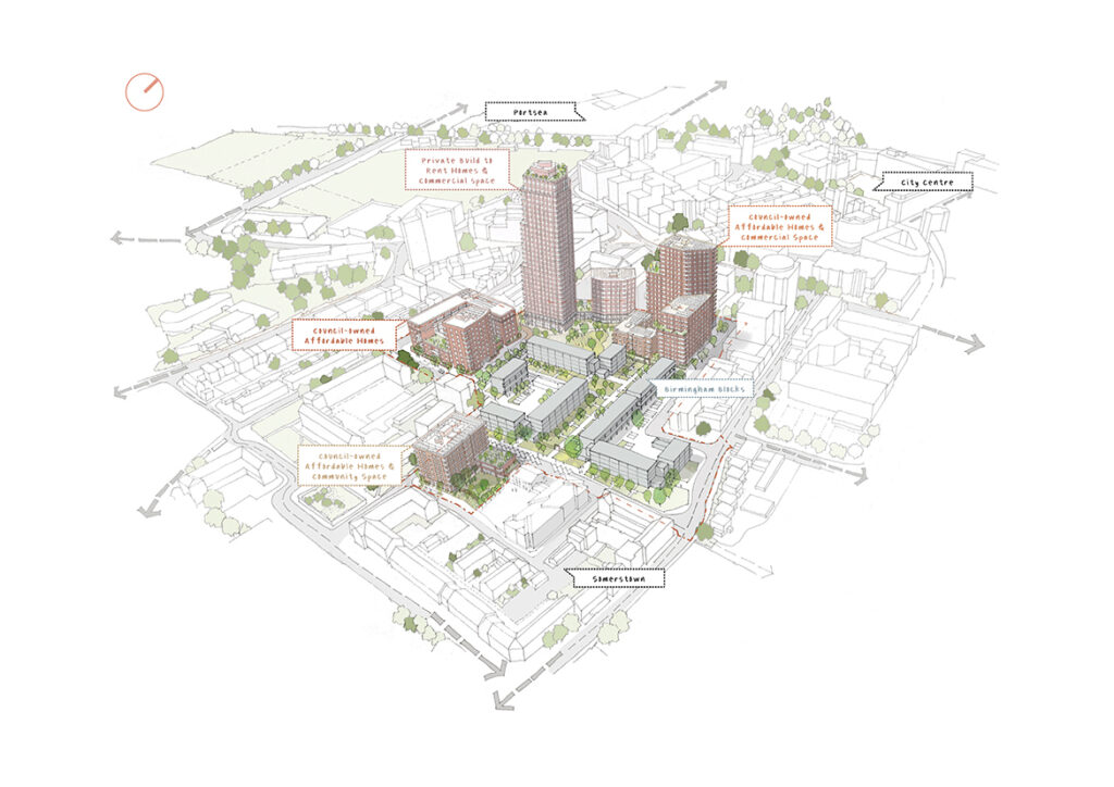 Pleased to share that our scheme Somers Orchard located in Somerstown in Portsmouth, Hampshire has achieved planning. The project is an ambitious and pioneering community-led renewal of the estate that previously housed the two structurally unsound, 1960s high-rise buildings, Horatia House and Leamington House. The development will provide 566 mixed tenure homes alongside wider public realm improvements which will meaningfully repair the urban fabric and reconnect the neighbourhood to its surroundings.