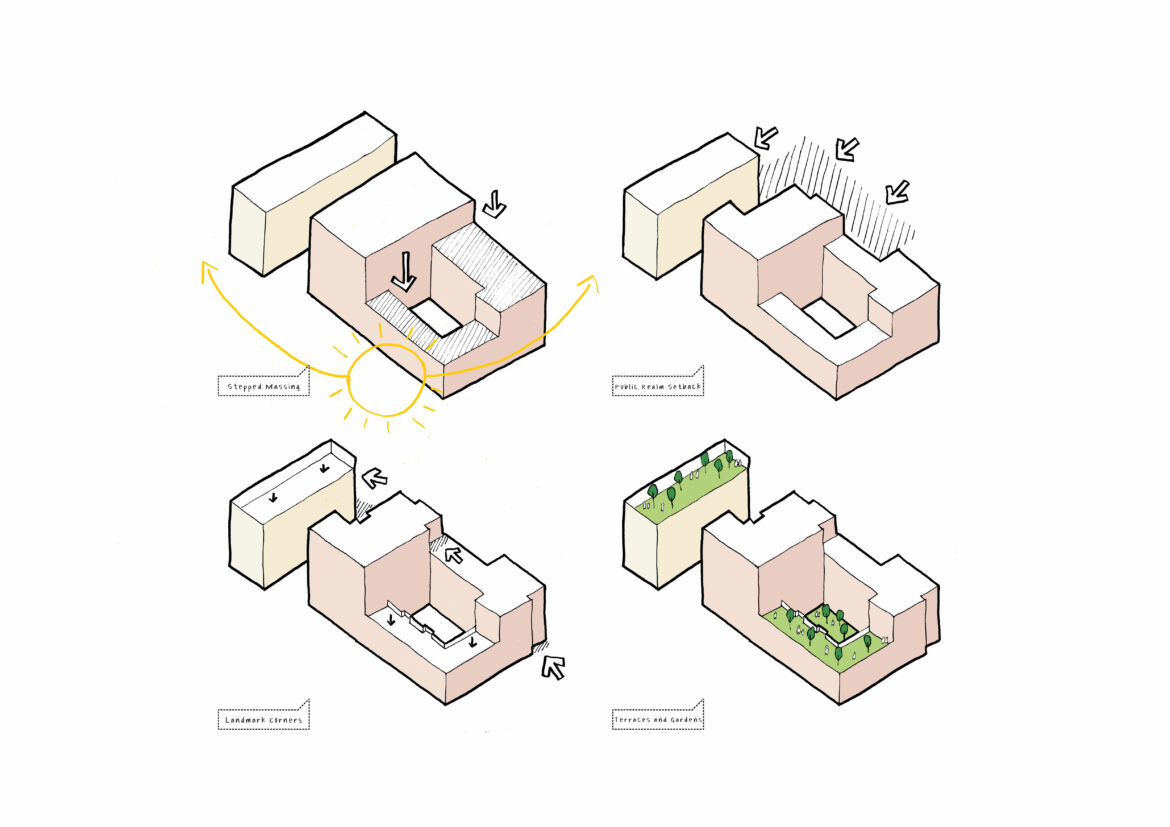 The building is stepped in height to maintain sightlines to key heritage buildings in St Martin’s Square and improves daylight into homes. Deck accessed homes wrap the three-storey element to the south and western ends of the courtyard, framing key views across the greenery Dual-aspect homes are maximised and each featuring Juliette balconies with bespoke planter boxes to allow for personalisation and planting throughout the façade.
