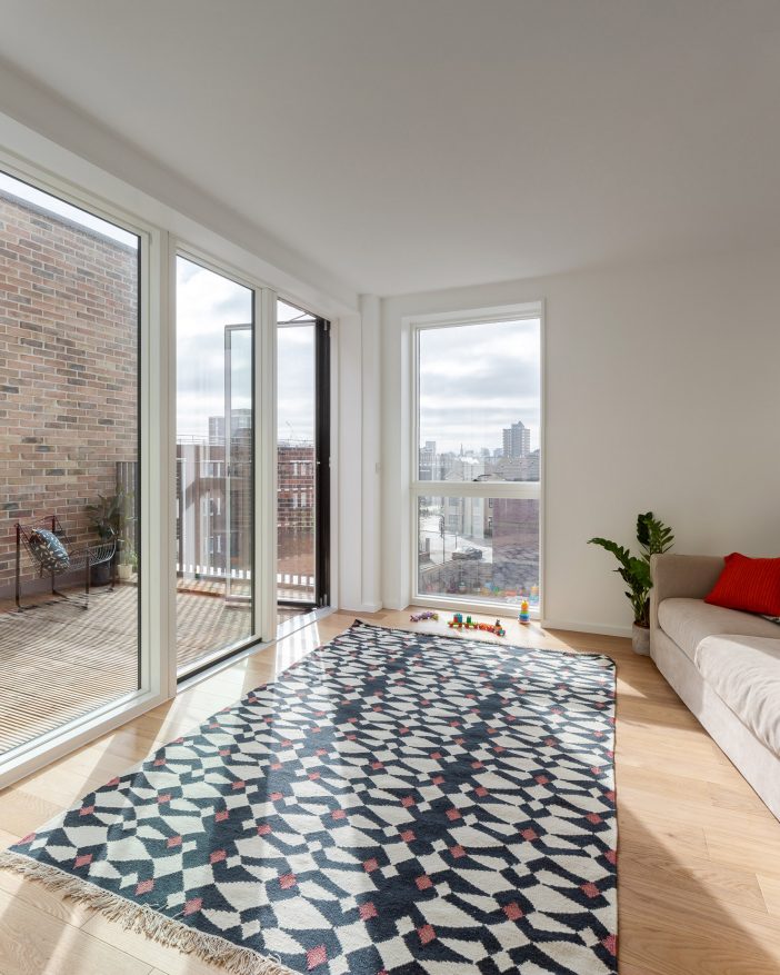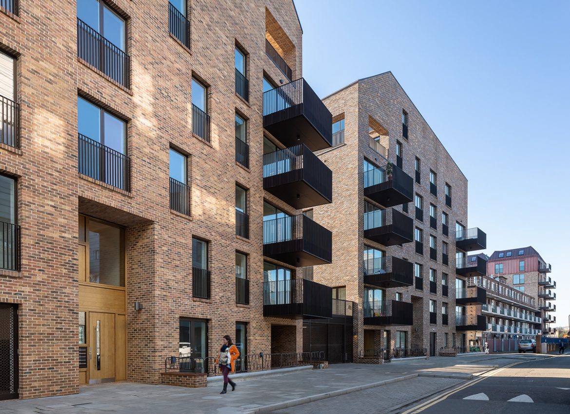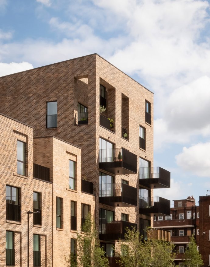 A mixed collection of building typologies at Branch Place contributes to the variety of the townscape of the new neighbourhood, but also provides a much-needed mix of dwelling types. The buildings occupy key plots within the masterplan’s network of public streets and pathways which improve wayfinding and establish connections to the local area, with an east-west route reinstating the historic Colville Street through the heart of the estate and a set of north-south pathways opening up pedestrian links between Shoreditch Park and the Regent’s Canal.