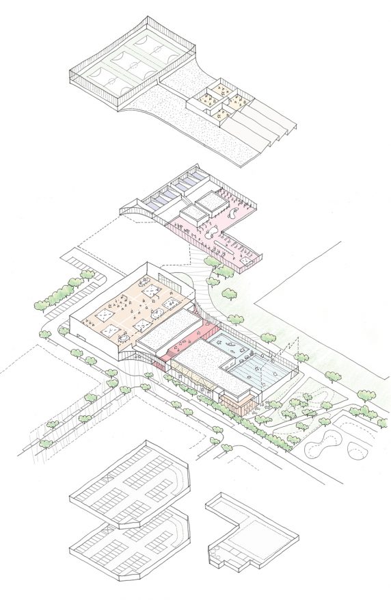 The outcome is a set of typological hybrids, with mixed vertical stacks and co-location to create space and flexibility for different activities to sit together. United by a set of character details, this family of buildings are arranged and orientated to maximise long views out, views in, and greater visual and physical connections between different spaces to encourage participation and collaboration among those who will use the facilities.