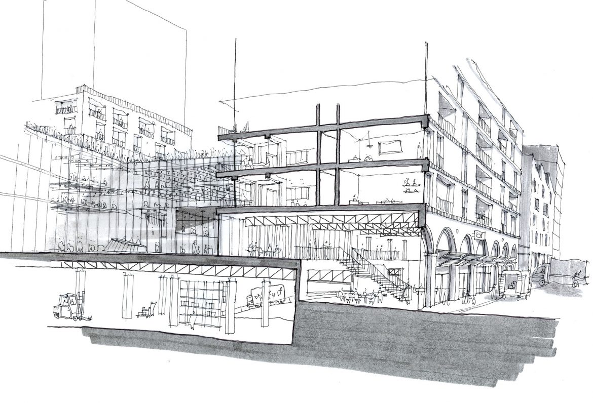 The neighbourhood is located on a 3ha sliver of land bordering the main Kings Cross redevelopment zone and is surrounded by areas which have been undergoing significant redevelopment. The site is home to 30 small businesses and supports c.500 jobs. To support the growth and retention of local businesses, our designs extensively redevelop the lower-grade industrial units, which currently occupy 10,000 sqm, and propose a shift from low-density, single-storey units to multi-level spaces fit for modern industry and treble capacity to 30,000sqm and adding 1000’s of new production jobs to the local economy. As well as strengthening the public realm and the industrial character of the area, our proposal allows for the creation of 750 locally affordable new homes rented directly through Camden Council.