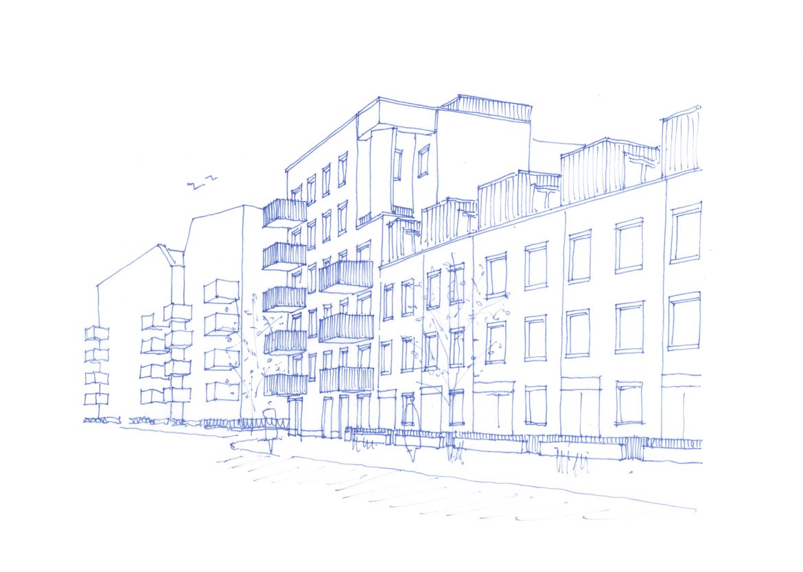 The shifts in massing, form and brick colour across the final buildings of phase two contribute to the characterful architectural identity of the new Colville neighbourhood. The new buildings are united through a well-mannered brick palette with cast stone used to define windows, inset balconies, entrances and ground floors.