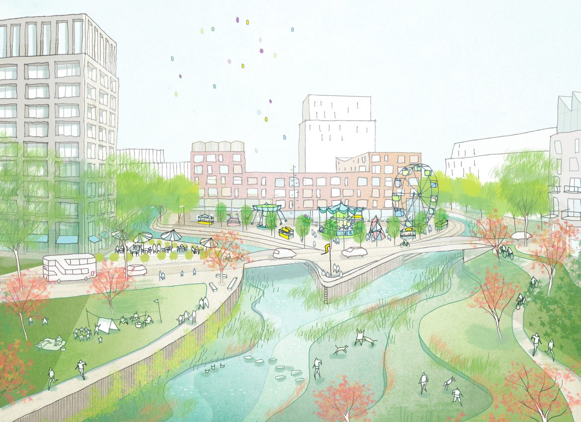 Meridian Water is currently the largest and most ambitious public-sector regeneration project in the UK. Located in the upper part of the Lee Valley, North-London, the project will transform an 85ha, semi-vacant post-industrial and retail site into a thriving district of mixed-use urban neighbourhoods for people to live, work and spend time. With c.10,000 homes and extensive supporting civic infrastructure, the project will play a vital role in London’s regional growth strategy and bring important social and economic benefits to communities along the Lee Valley.