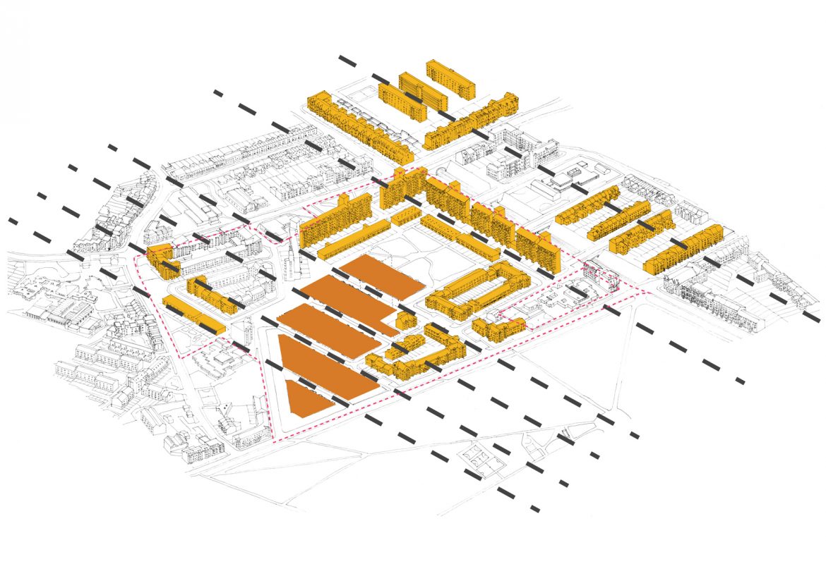 Our masterplan for the Nightingale Estate, located to the north of Hackney Downs, is the outcome of a community-led design process and a collaboration with Stephen Taylor Architects, Henley Halebrown and Townshend Landscape Architects. The scheme will provide a total of 400 new mixed-tenure homes with community facilities, retail and public-realm improvements that together reconcile and remake a previously fragmented urban neighbourhood.