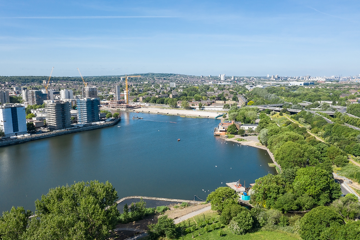 This largely pedestrianised site creates a series of gardens, swales and play spaces linking to a generous public promenade which will allow people to enjoy the waterfront more easily. Using the lake as a focal point, the neighbourhood is formed of a series of elegant brick-built residential buildings configured to front onto the water and provide elevated views from the living spaces.