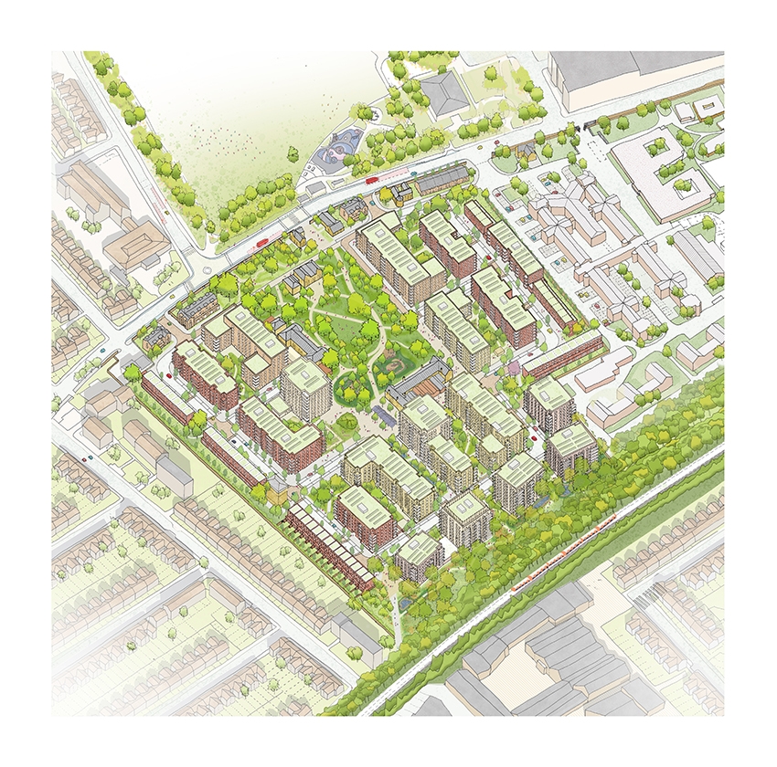 The next phases of the St Ann’s New Neighbourhood masterplan in Haringey, North London, will deliver 464 new homes and will continue the transformation of the former St Ann’s Hospital site into a thriving mixed-use residential neighbourhood, enhancing and extending the area’s ecology and heritage and securing a long-term legacy for Peabody.