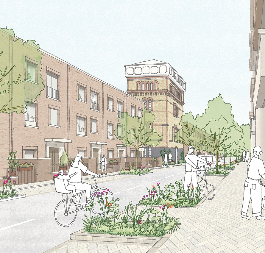 A substantial 73% of the new homes in Phase 1B & 2 will be affordable, including 58 homes for a local Community Led Housing group. Completing the southern half of the overall masterplan, the nine new apartment buildings and fourteen family houses will sit alongside restored Victorian-era hospital buildings including the Water Tower and Admin Building. All buildings are united through a complementary brickwork palette and architectural language, inspired by the distinctive character of the Victorian hospital and surrounding area, ensuring a fully tenure-neutral approach and continuing the ambition of the first phase as set out in the approved Outline Masterplan and Design Code.