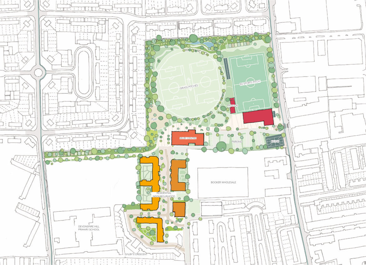 The Centre has a longstanding role as a service provider and a pillar of local identity and culture for the area. Currently situated in an outdated school building, the facilities provide space for local groups and businesses. The masterplan relocates the Selby Centre to a key location at Bull Lane playing fields, freeing up the old school site for 202 new council rent homes, directly addressing local affordable housing need.