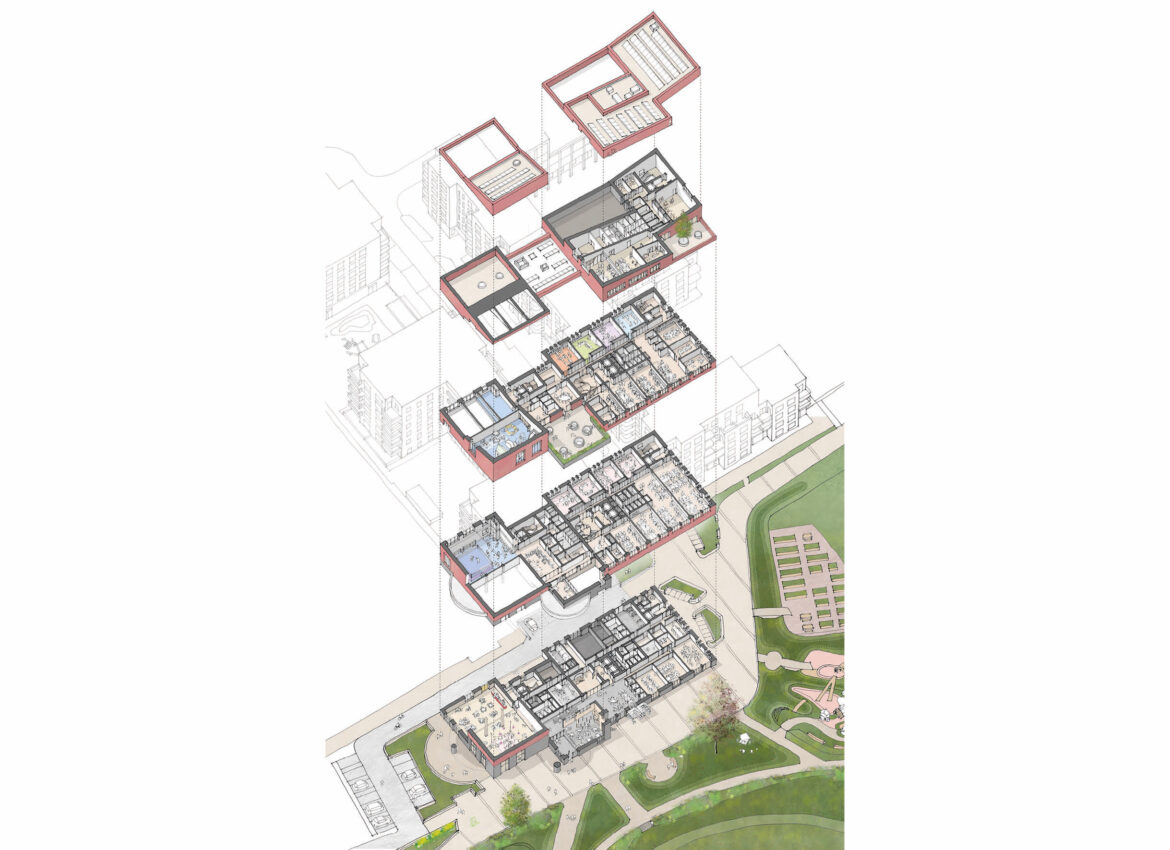 The Selby Centre sits at the heart of the Selby Urban Village, a new masterplan transforming a former secondary school site and underutilised playing fields into a new community hub with upgraded facilities, new connections to the park, enhanced sports amenities and new social housing. The project, for Haringey Council, creates a better-connected and inclusive place for people to live, learn, work and gather. The scheme was approved for planning in Spring 2025.